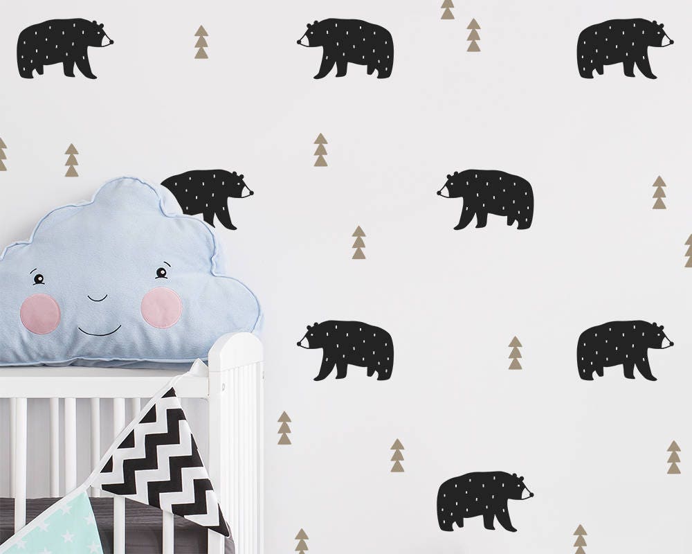 • Each bear decal measures approximately 4.5" X 3", each tree decal measures approximately 0.5" X 1.5"