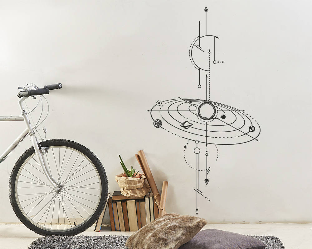 Embark on a cosmic journey with our mesmerizing geometric galaxy decal, a celestial delight for kids and adults alike! Explore the depths of space with its intricate geometric patterns and bold lines, bringing a touch of cosmic wonder to any room. Let this celestial masterpiece transform your space into a captivating universe where imagination and style know no bounds!