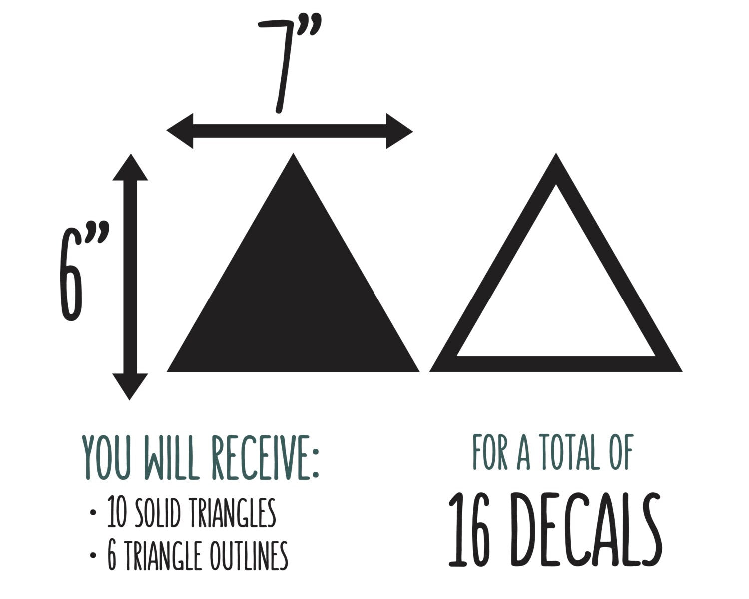 Add a touch of modern sophistication to your space with our triangle decals! These sleek and stylish designs bring geometric flair to any room, creating an ambiance that is both contemporary and visually captivating. These bold triangles will transform your space into a trendy haven that sparks creativity and makes a lasting impression!
