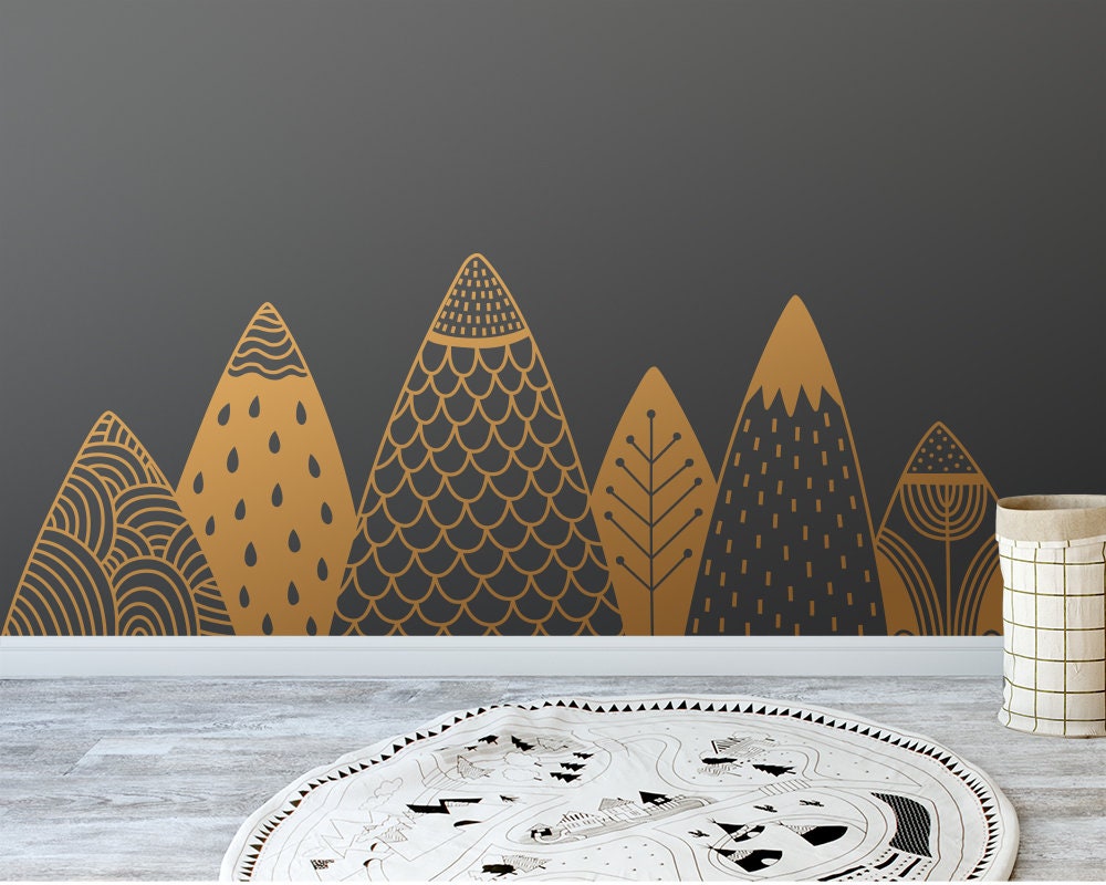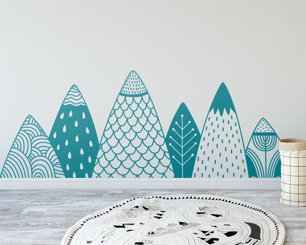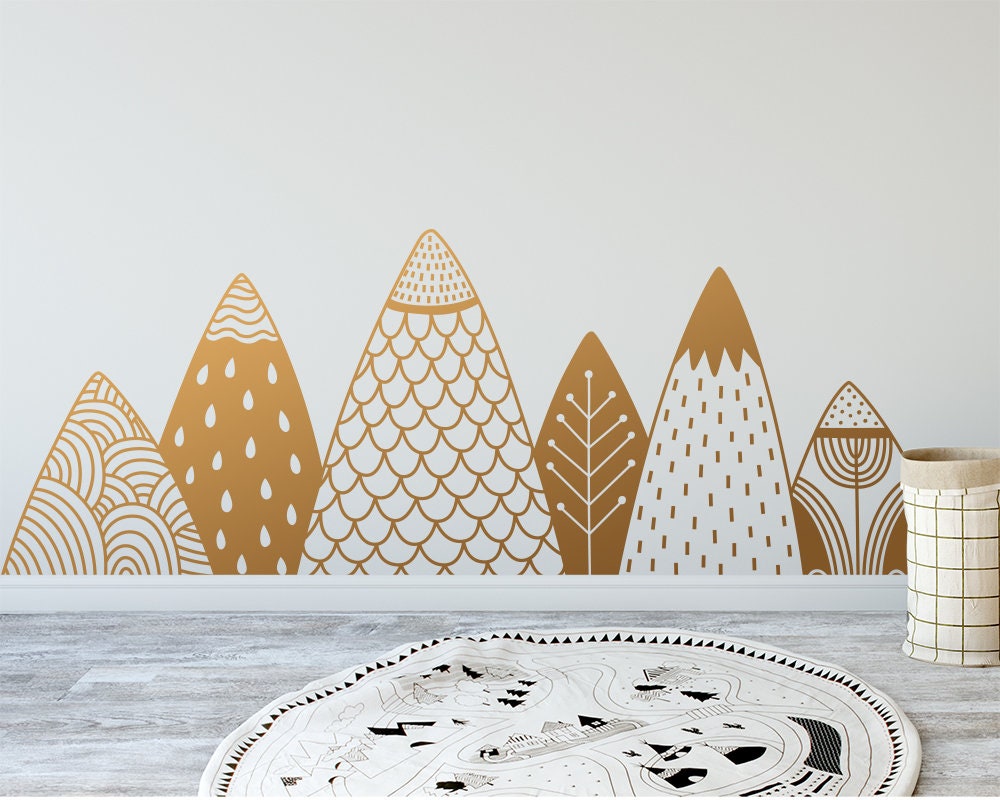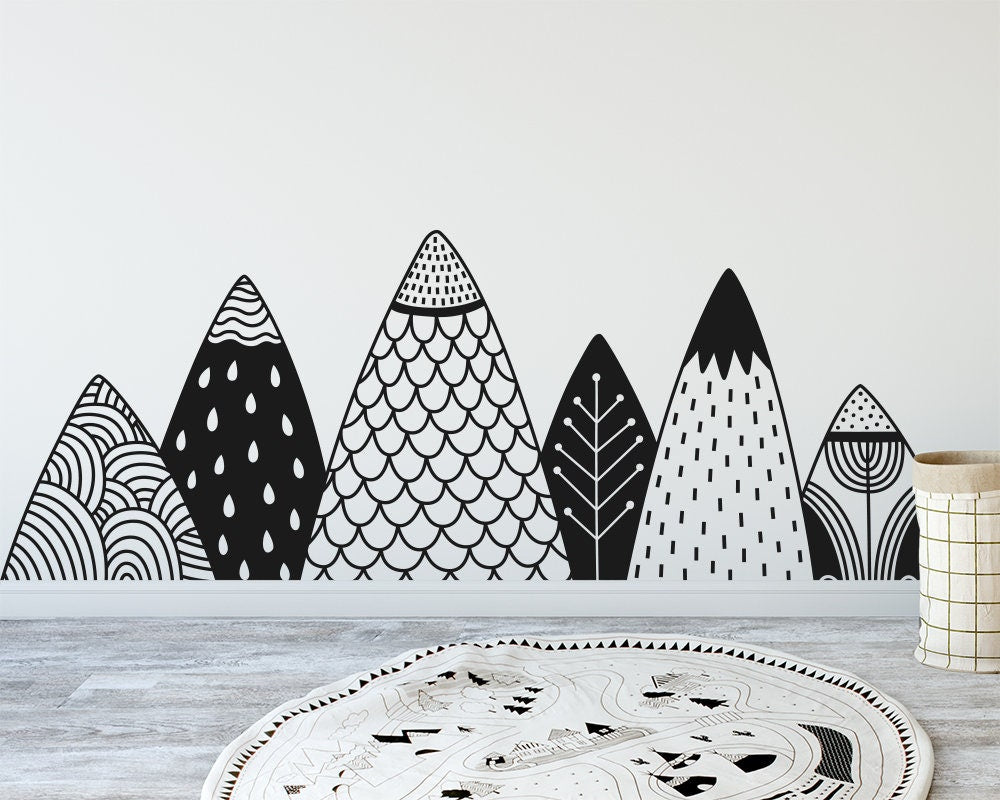 Transform your child's room into a whimsical wonderland with our delightful patterned mountain decal. These charming mountains, adorned with playful patterns, create a captivating backdrop that sparks imagination and adventure!