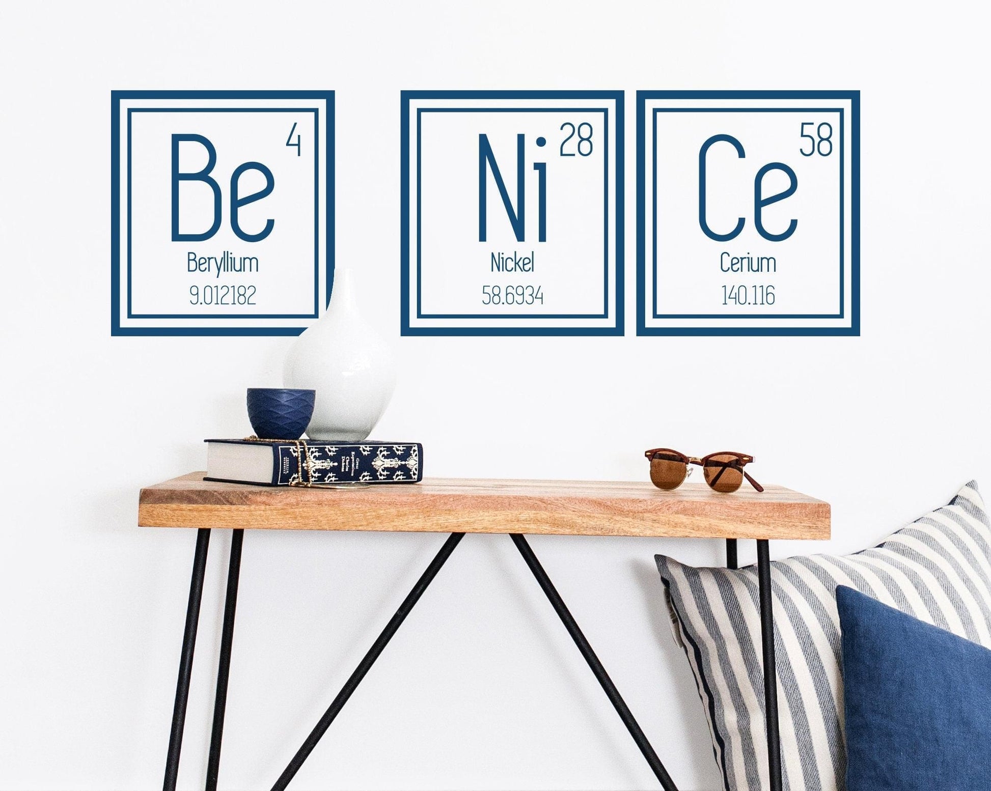 Unleash the atomic power of kindness with our "Be NiCe" decal, cleverly crafted using the periodic elements beryllium, nickel, and cerium. This scientifically stylish reminder serves as a daily inspiration to foster kindness and compassion. Make a statement with your decor and let the world know that being nice is an essential element of life!