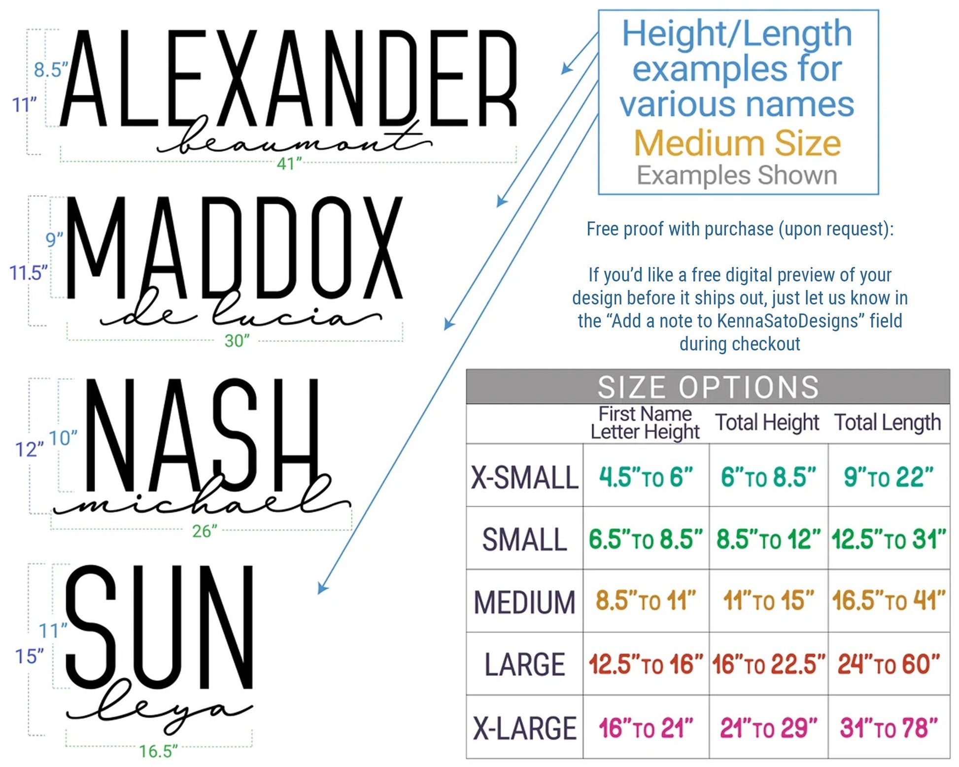 Make your child's room truly their own with our hand-made custom name decals! With a wide variety of colors and styles to choose from, you'll be able to create a personalized look that your child is sure to love!