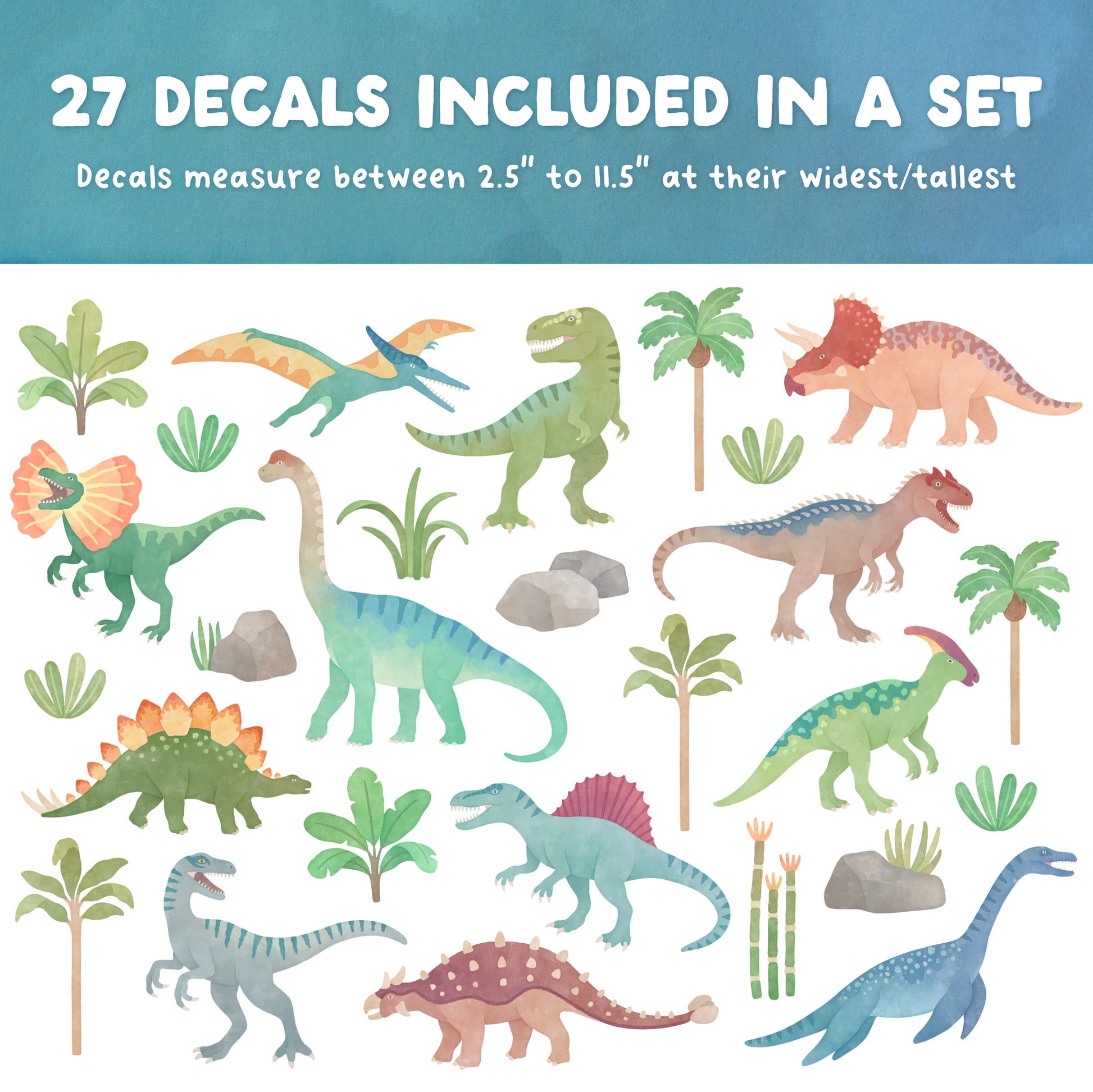 Stomp into a world of epic adventure with our dinosaur decals! Designed for young explorers who love creatures that roar, chase, and tower overhead, these decals bring a prehistoric playground right onto their wall. With every fierce T-rex, soaring Pterodactyl, and armored Stegosaurus, your little one's room becomes a land where imagination runs wild and ancient giants rule the day!