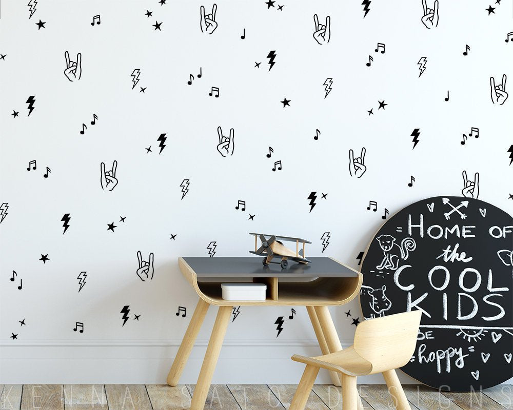 Get ready to rock and roll all night with our hand-made wall decals! These designs are perfect for kids who love music and want to show off their inner rockstar. So crank up the tunes and let your kids live out their rock and roll dreams with our playful wall decals!