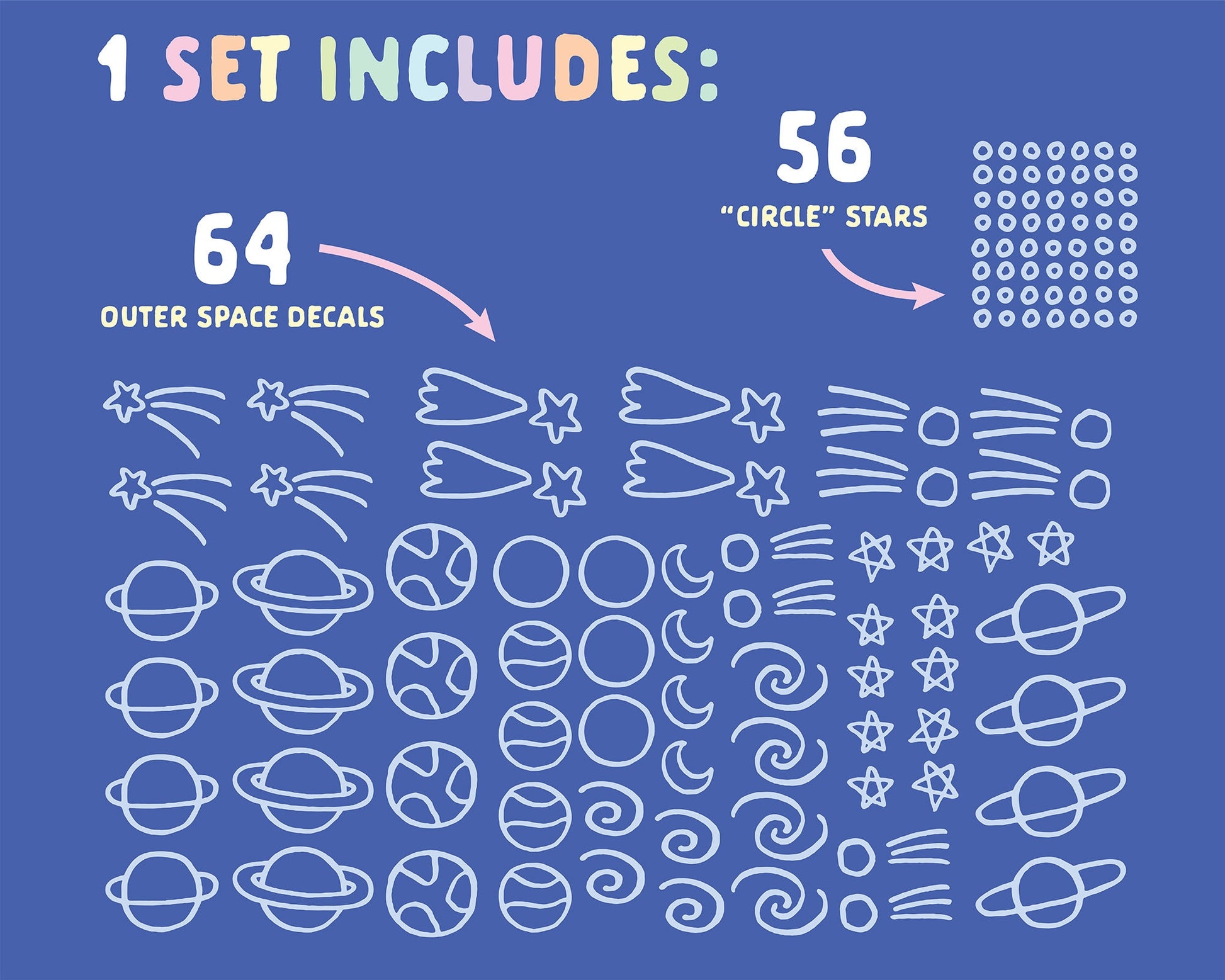 • Includes 64 space-themed decals and 56 small "circle" star decals (see 2nd preview image)