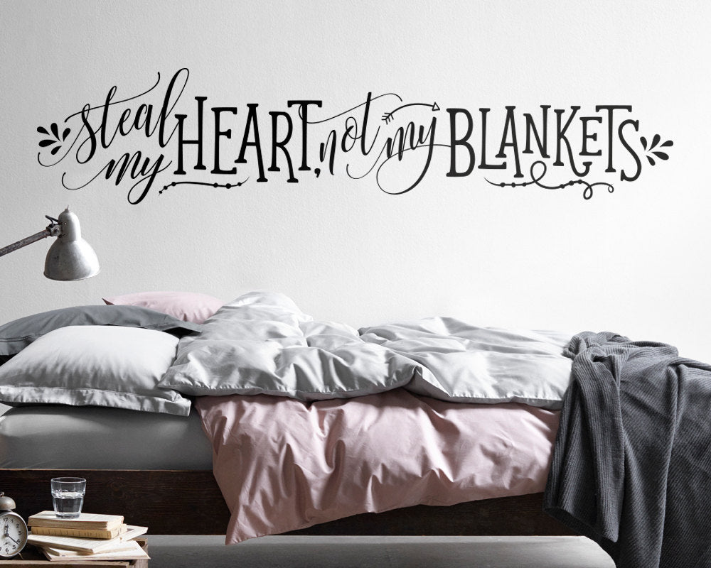 Heart stealer, blanket hog - our "Steal My Heart, Not My Blankets" decal adds a touch of humor and charm to your space. Perfect for bedrooms or cozy corners, this fun quote showcases your love for someone while playfully reminding them to keep their hands off your beloved blankets!