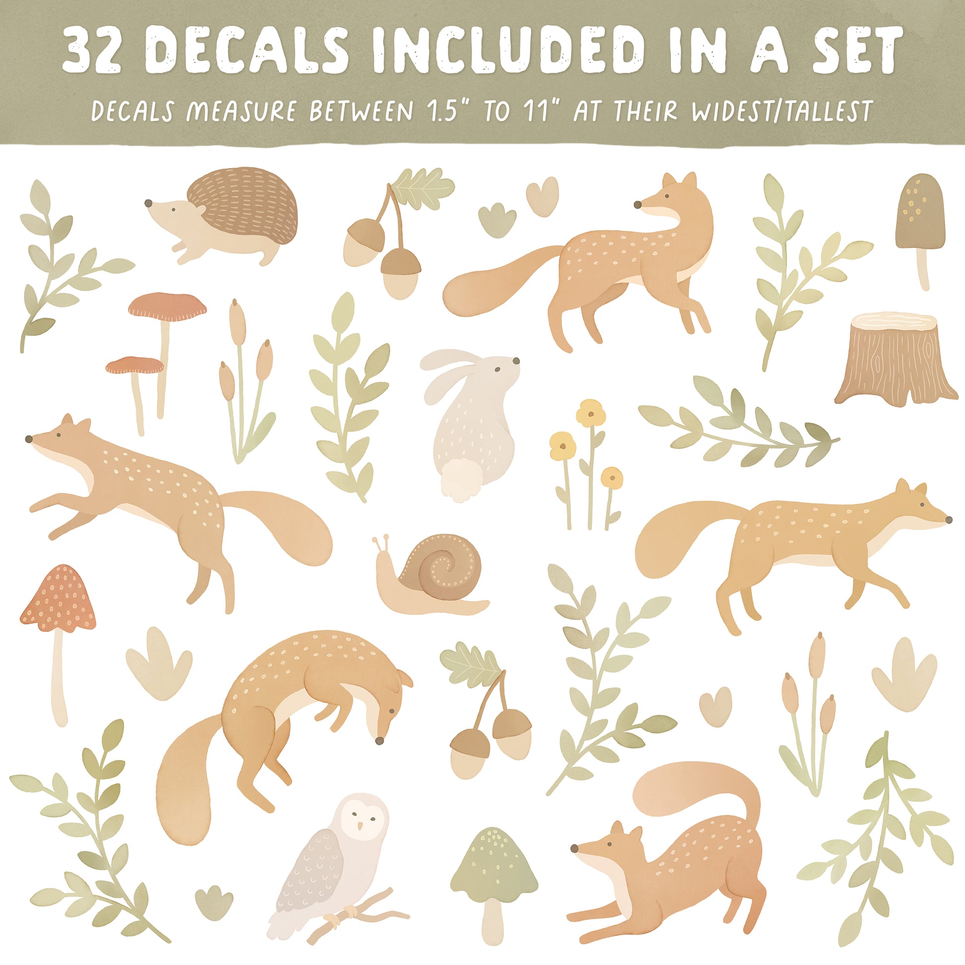 Bring the magic of the forest into your home with our charming woodland animal decals! Featuring playful foxes, whimsical mushrooms, and a cast of forest critters, these reusable decals will turn your child's room into a fairy-tale forest where stories come to life!