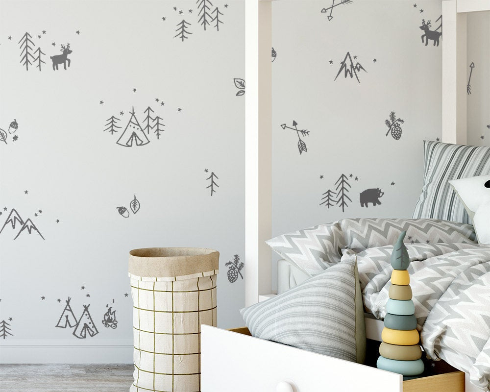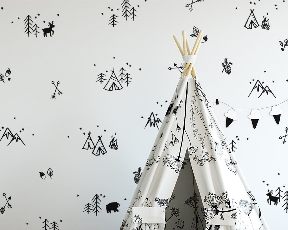 Teepee-toe into adventure with these tribal-style woodland decals! Add a touch of whimsy to your little one's room and let their imagination run wild amongst the trees and teepees!