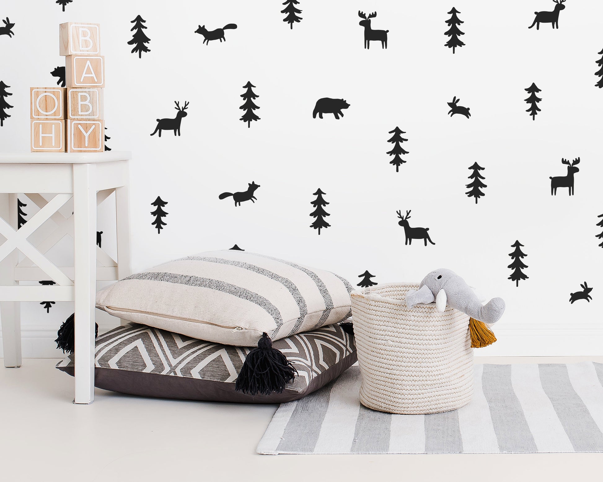 • This set includes 14 tree decals and 10 woodland animal decals (for a total of 24 decals)